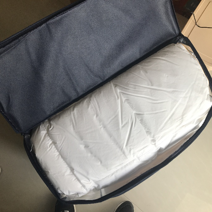 一打开,被子就从里面弹出来一截,说明被子的蓬松度很好。