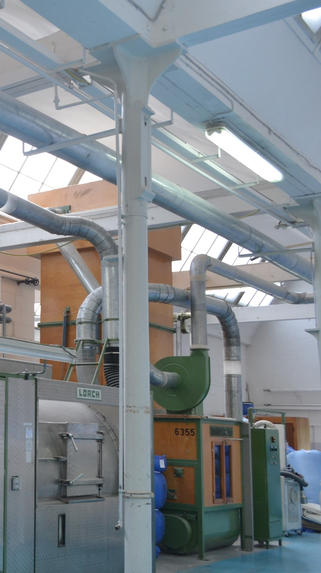 (遍布车间的羽绒运输管道)