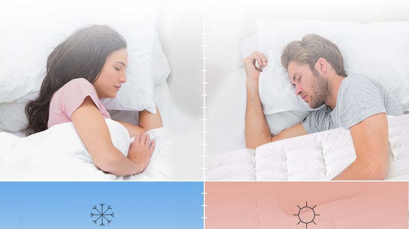 冬季梯形锁绒格一面向内,隔离外部低温,加倍续热锁温,保障温暖酣眠;夏季梯形锁绒格一面向外,热量散发加速,可降低1/3体表温度,实现清爽睡眠。